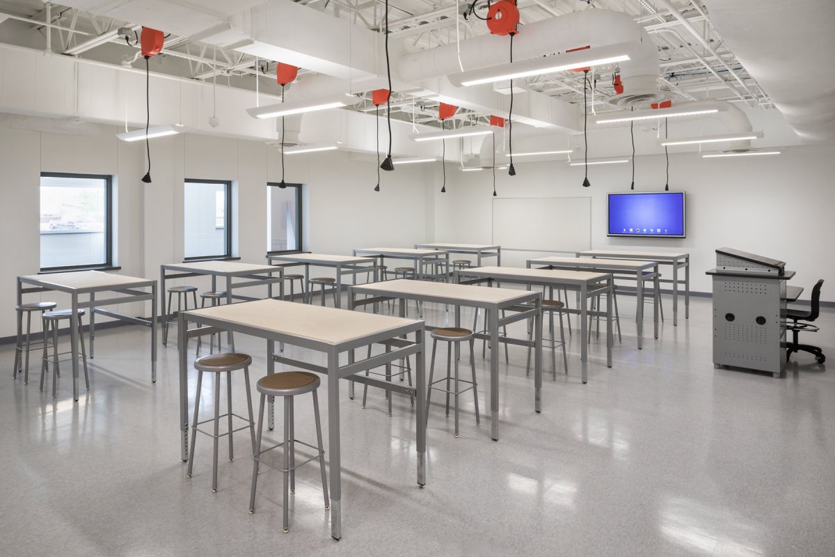 Makerspace Tables and 122 Series Stools facilitate hands-on learning and collaboration in the Makerspace classrooms.