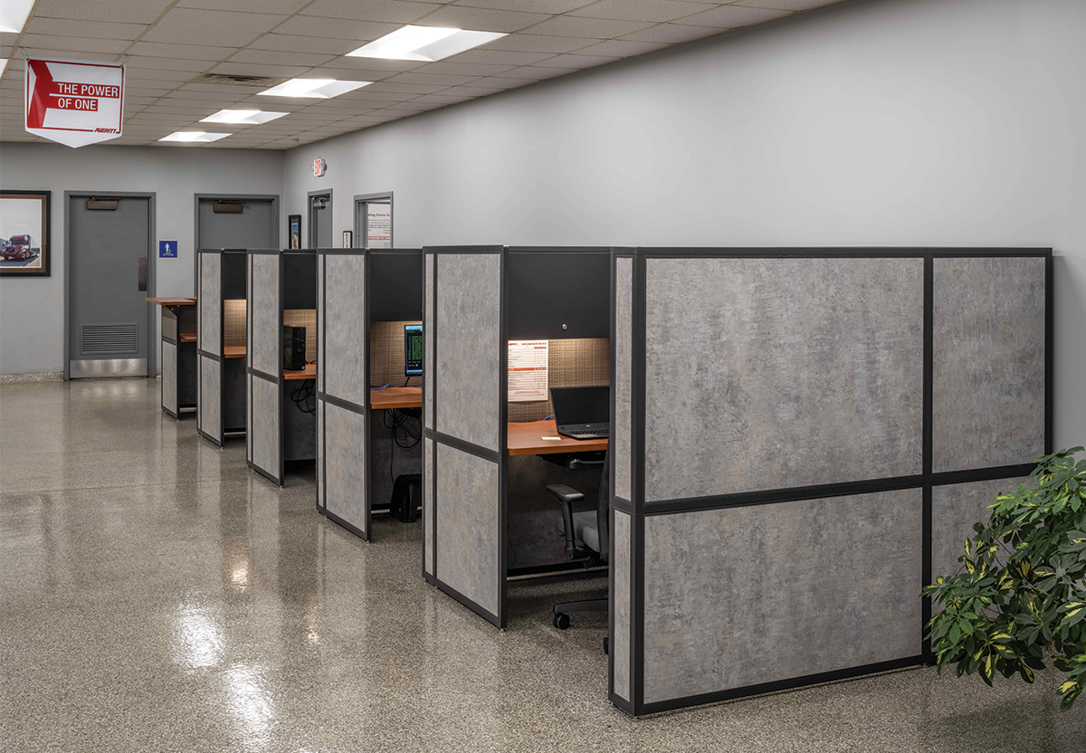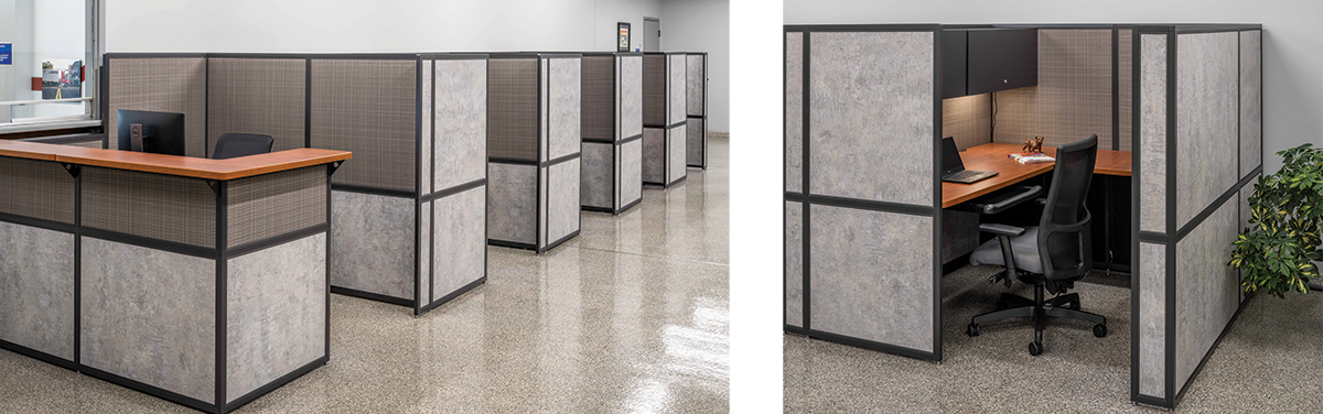 For the office spaces, the original cubicles were covered in fabric, which easily wore down and became outdated over the years. The Averitt Team wanted a solution that was easy to maintain and would cut down on wear and tear. The Virco team designed custom cubicle solutions with hard sides, which can be easily cleaned. Each cubicle includes higher panels for privacy and overhead storage solutions. The reception desk was customized with lower panels to accommodate a transactional counter window.